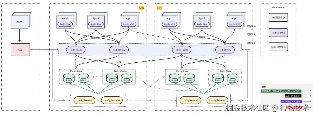 - Redis-proxy 为代理组件,业务通过 proxy 可以像使用单点实例一样访问 Redis 集群,使用更简单,并且在Redis-proxy 上提供同区优先就近读、key 维度或者命令维度限流等高级功能;
