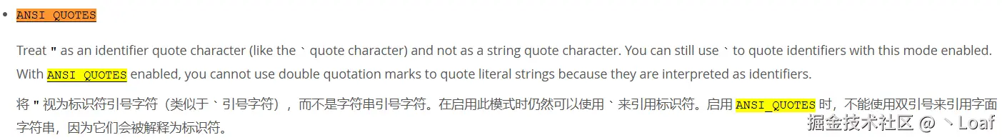 表名被双引号括起来的原因是SQL_MODE中的 ANSI_QUOTES 引起的:dev.mysql.com/doc/refman/…