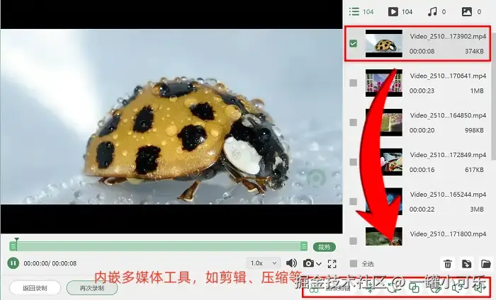 步骤3:录制结束后,点击停止按钮,软件会自动保存录制好的视频。之后可以在软件内直接预览,要是有不满意的地方,还能使用 “高级剪辑” 工具进一步处理,比如剪辑片段、添加特效等,让视频更合心意。