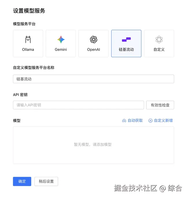 随后,通过花生壳云端管理平台,用户可按需接入多类主流模型服务,包括硅基流动、OpenAI、Gemini等云端平台,以及基于Ollama本地运行的模型,实现统一的API配置与调用管理。