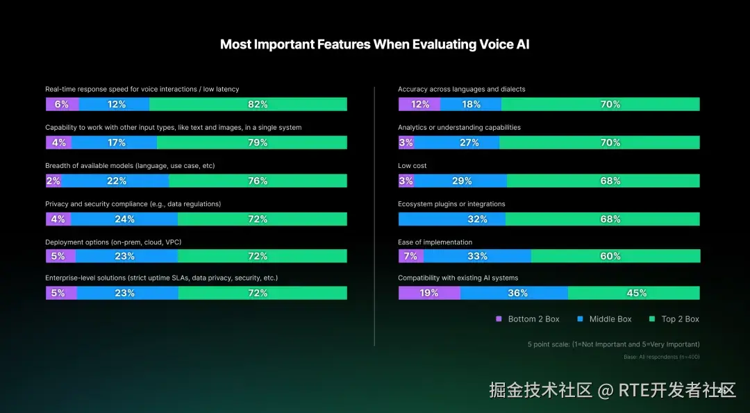 低延迟和多模态融合是评估语音 AI 时最看重的特性。