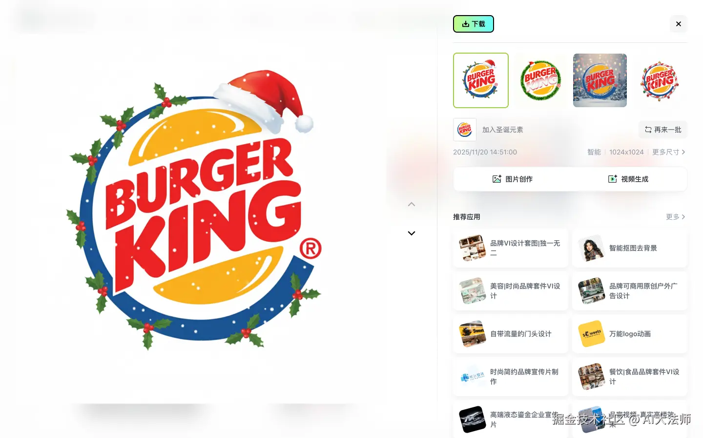 但传统设计总踩坑:要么把logo改得“亲妈不认”,红配绿堆一堆,连“这是汉堡王”都看不出来;要么耗时太久,等设计好,圣诞预热都过一半了。直到AI设计工具出现,这些问题才算有了解法。