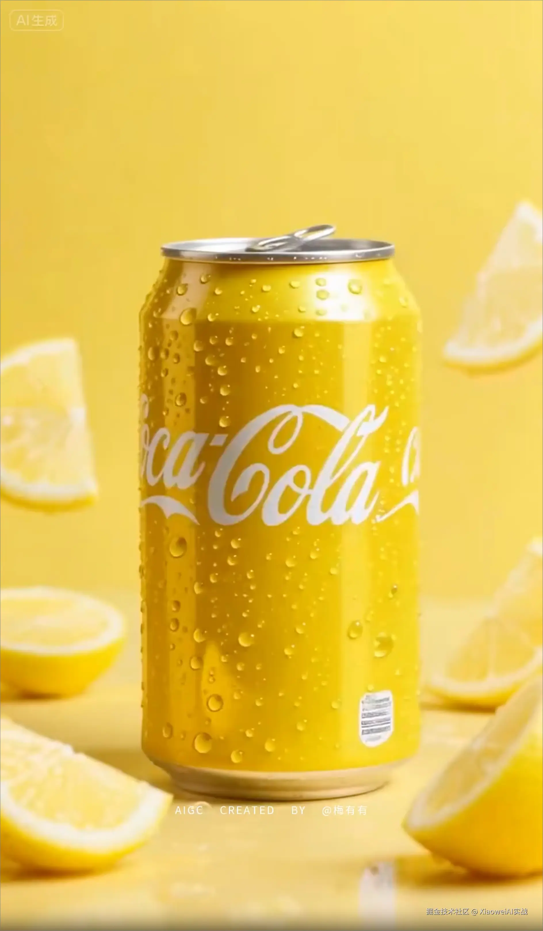 [第一步:上传静态海报;第二步:点击“生成视频”;第三步:生成的动态效果,柠檬可乐汽水饮料气泡在动。]