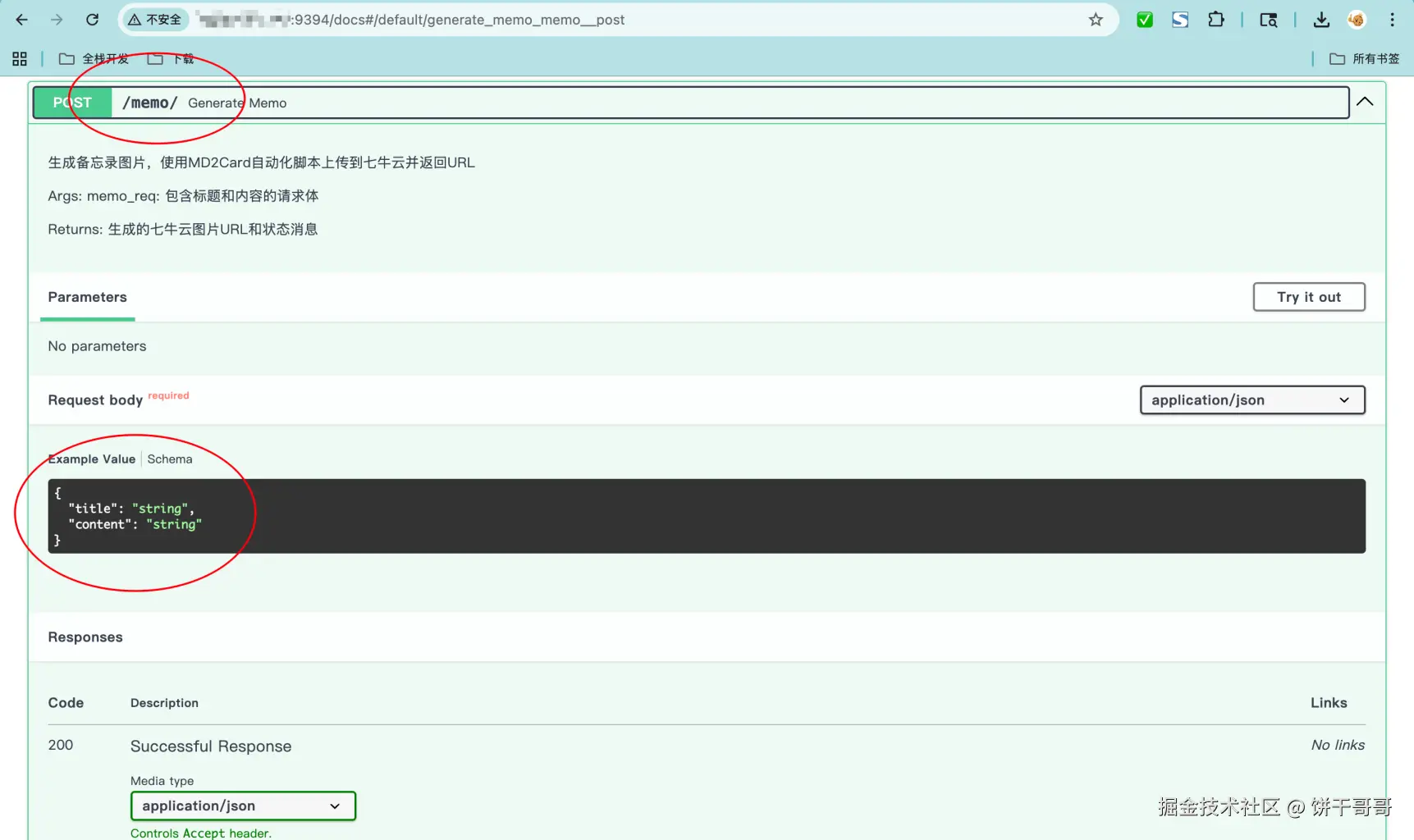 用FastAPI的好处就是会自动生成一个接口文档,如图,我是部署在了服务器的9394端口的/memo