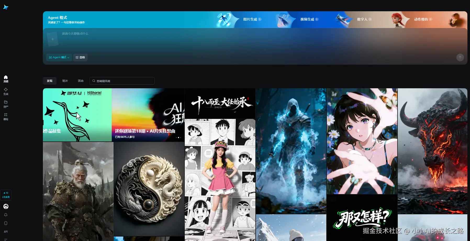 登录即梦AI,在灵感广场随便点个"做同款",改改主体词,生成20张图。感受不同风格,不用懂原理。