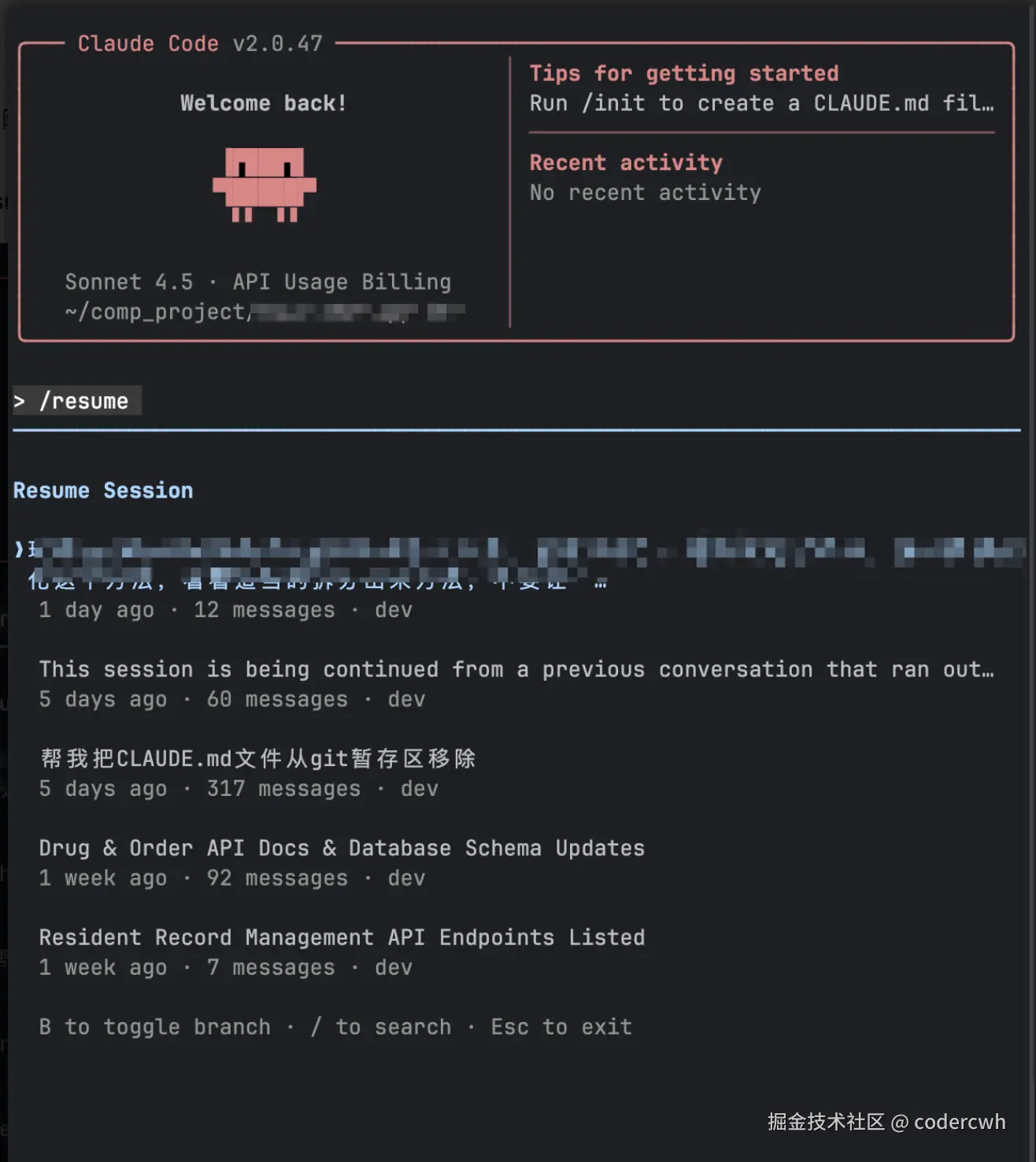 每次新打开一个窗口就是一个新的会话,如果想要回到之前的对话,可以采用这个命令