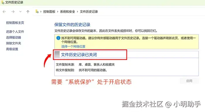 U盘数据恢复日常方法4:文件历史记录功能