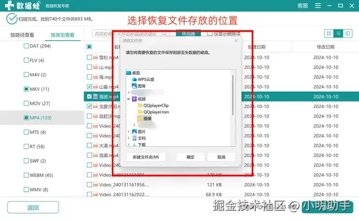 步骤3: 在点击“导出”按钮后,我们就能选择文件找回后暂存的位置;完成U盘数据恢复。