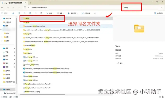 步骤1: 在电脑硬盘的右上角搜索框输入“temp”;