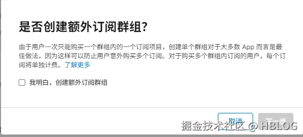 重要:必须先创建订阅组(Subscription Group)才能创建订阅产品。