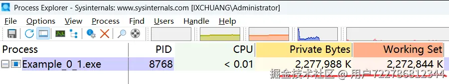 卦中的代码非常简单,就是每次读取 AppName 时都调了一下 BuildConfiguration 方法,仅此而已,但将程序跑起来之后,居然发现程序吃了 2.2G 的内存,真是没边的事,截图如下: