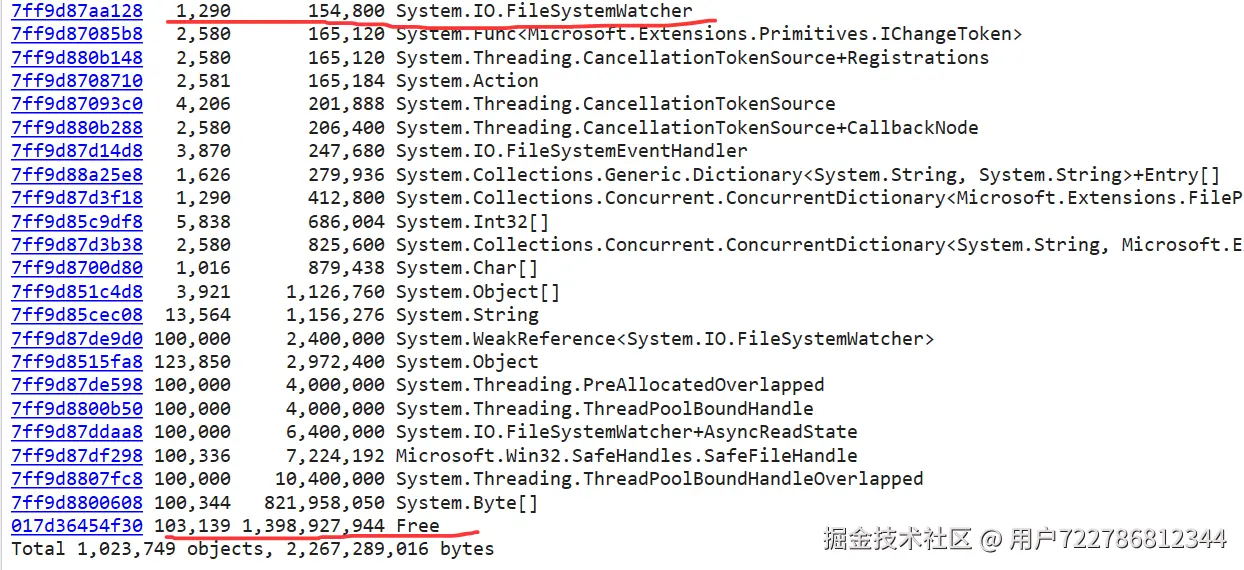 1.39G,这是经典的内存碎片化。 - FileSystemWatcher 高达 1290 个,表明程序存在大量的文件监控。