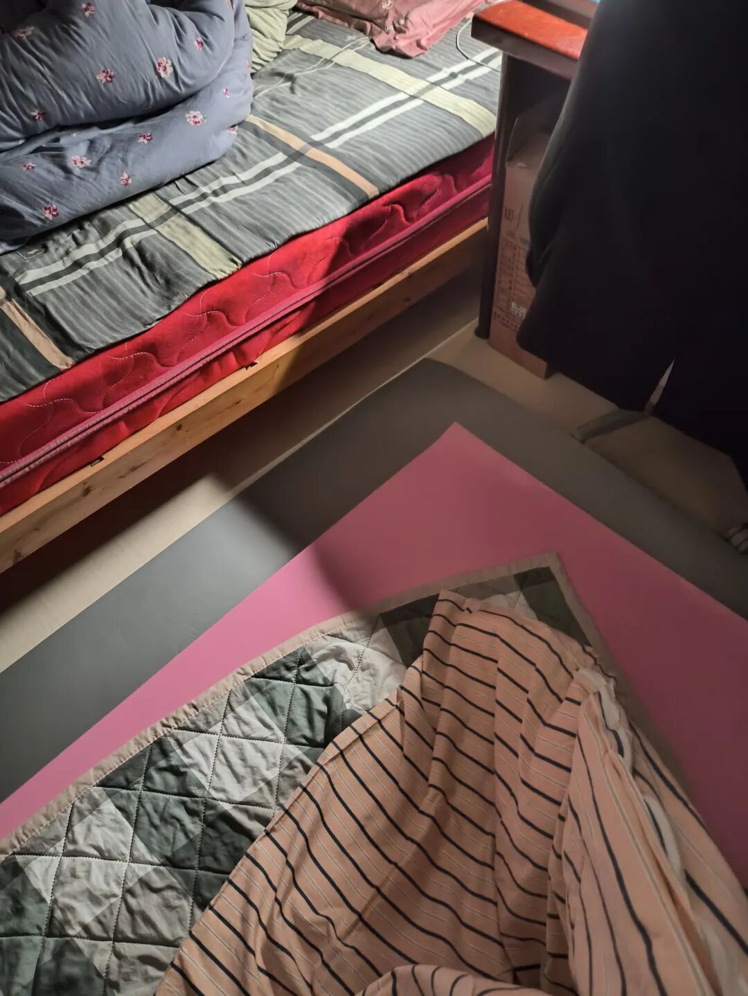 我只能把我跳舞和健身用的地胶拿出来打地铺了哈哈哈哈哈。我真没想到有一天还能有这种用法。