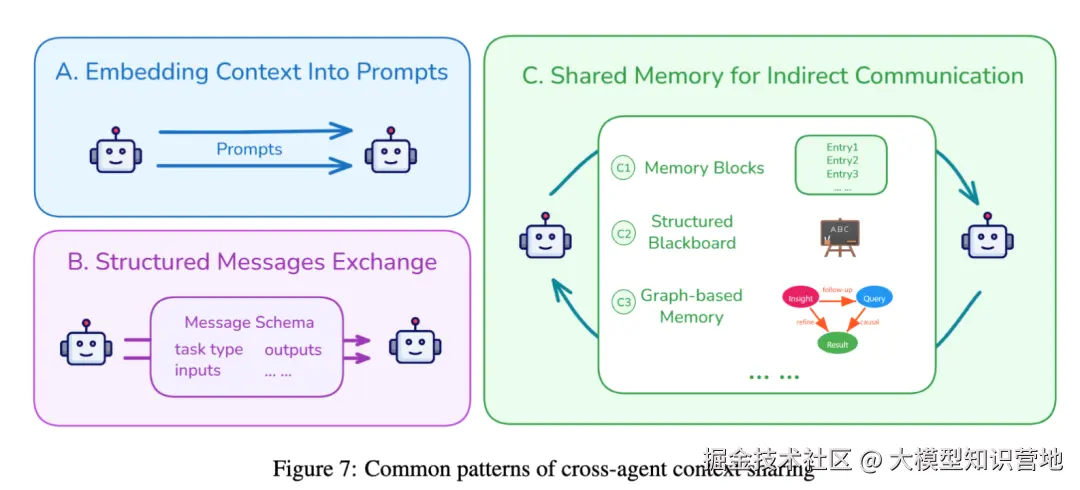 - 共享记忆: 所有智能体读写一个公共的“黑板”或知识图谱,实现异步协作。