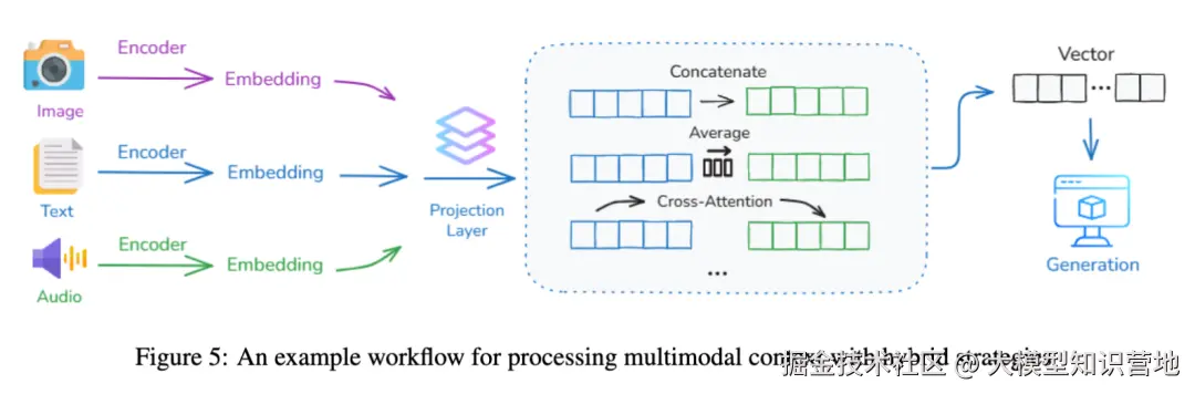 - 将文本、图像、音频等不同模态的信息映射到统一的向量空间,实现语义对齐。
