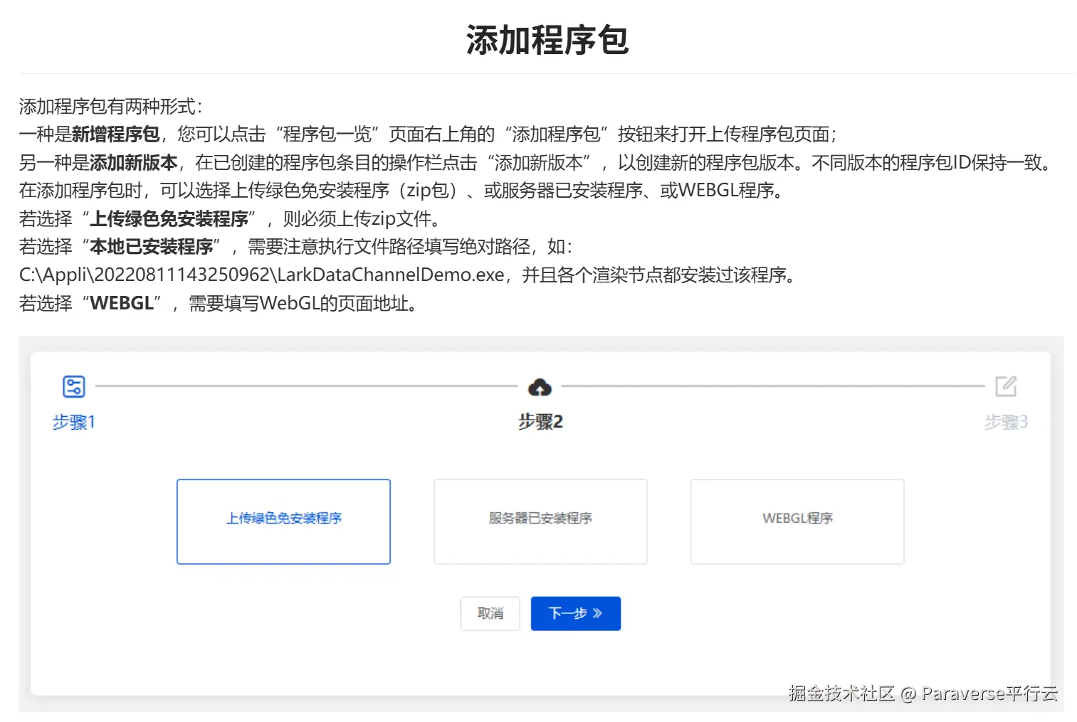 - 平台上传:登录LarkXR PaaS平台,将应用包体或可执行文件上传至指定存储。