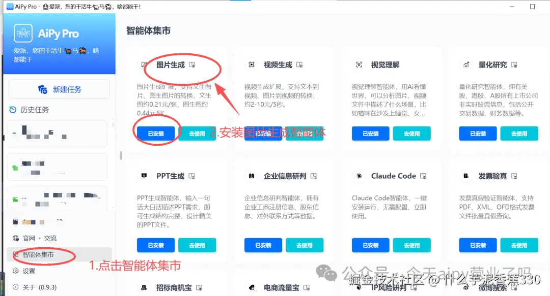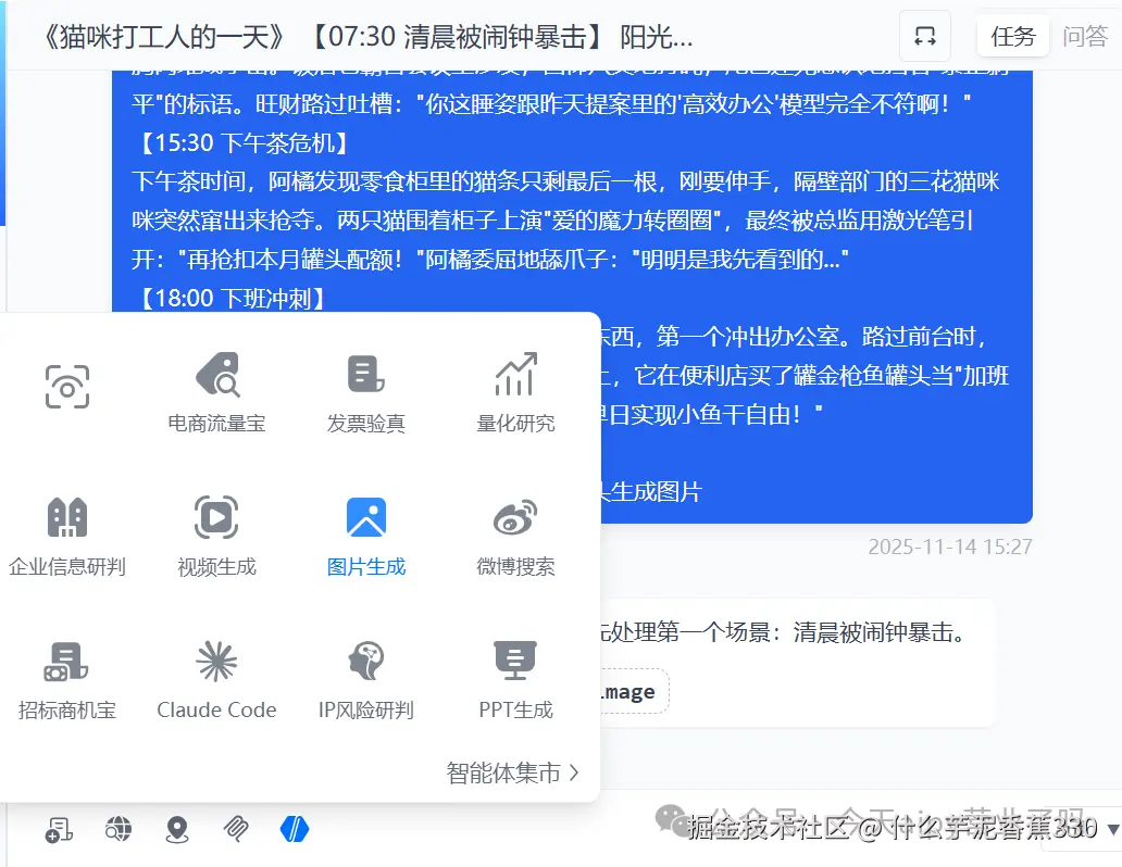 只需要点击一下就可以安装,上图就是安装成功之后的样子。该智能体支持将你的文本生成对应的图片,非常好用。