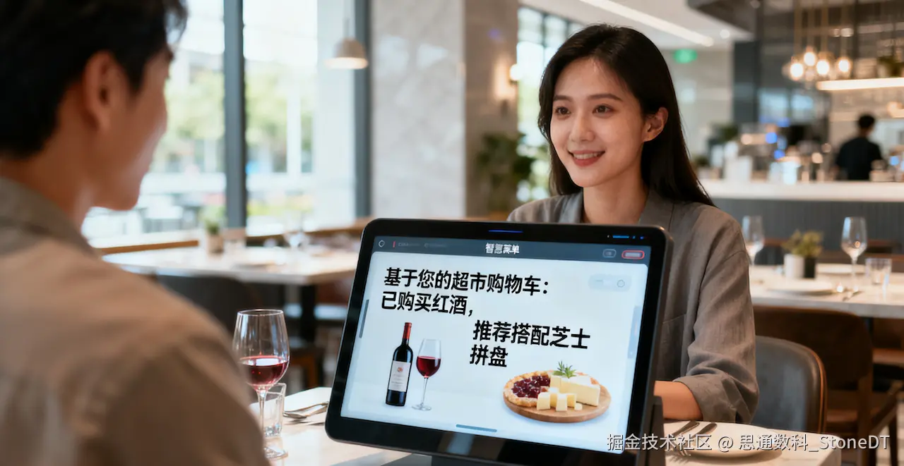 思通数科AI视频监控系统为综合体打通了跨业态数据链。顾客在超市入口被识别后,系统推送:“购物后餐饮8折券。”在超市货架间,动线检测触发:“您买了牛肉,餐饮区有现烤牛排套餐。”顾客进入餐饮区落座,超市购物车数据同步:“您买了红酒,推荐搭配芝士拼盘。”离店时,超市电子小票与餐饮积分合并推送,实现全链路闭环。