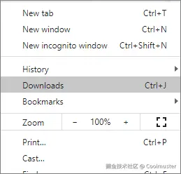步骤 2. 点击浏览器右上角的菜单按钮(三个点或一条水平线图标),然后选择“下载”选项。