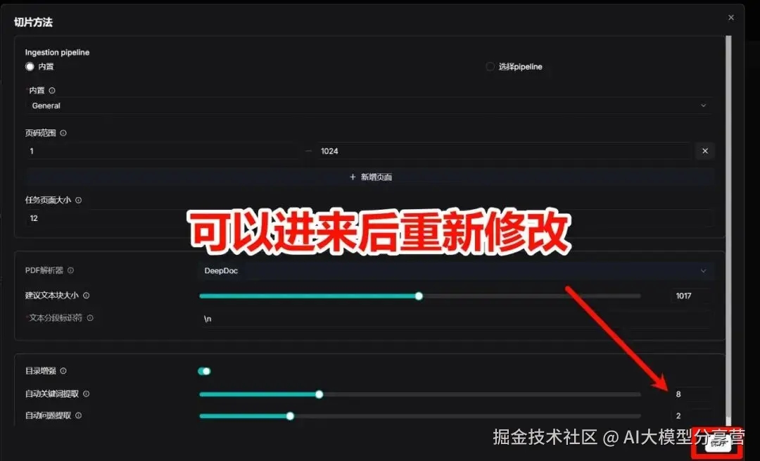 4保存生效:调整完成后点击“确认分块”,生成最终“知识卡片”。