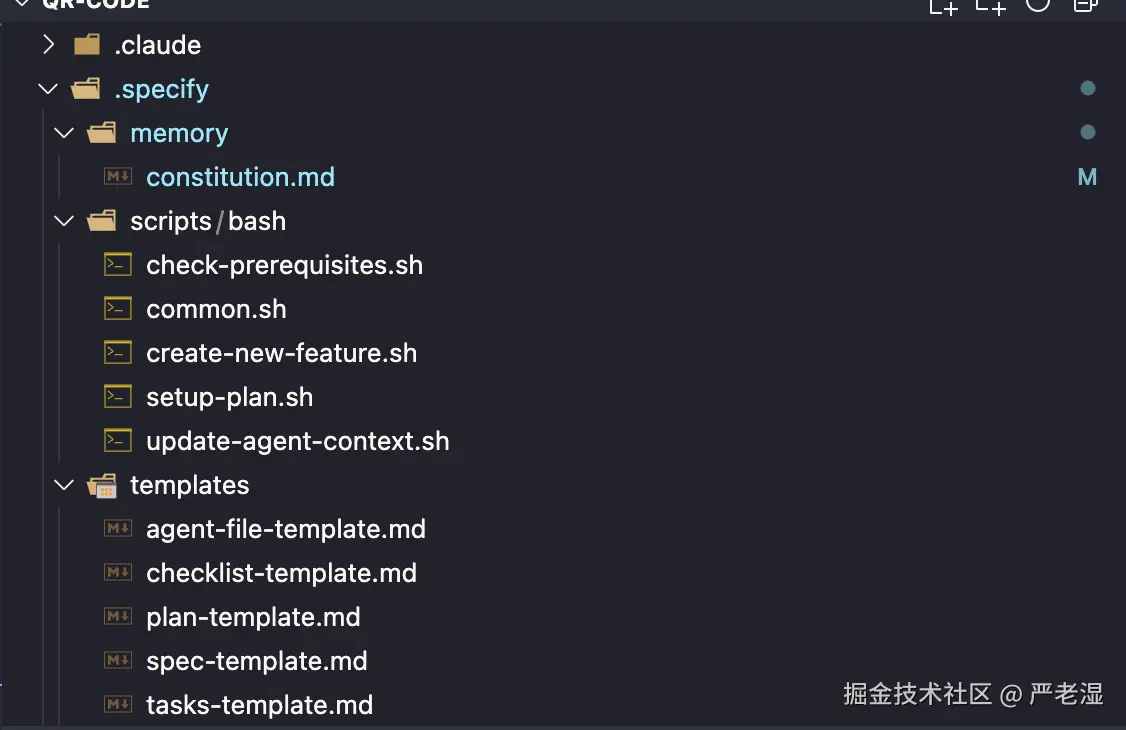 memory/- 存储项目级原则和规范scripts/bash/- Spec Kit 的调用脚本template/- 执行命令时使用的模板文件