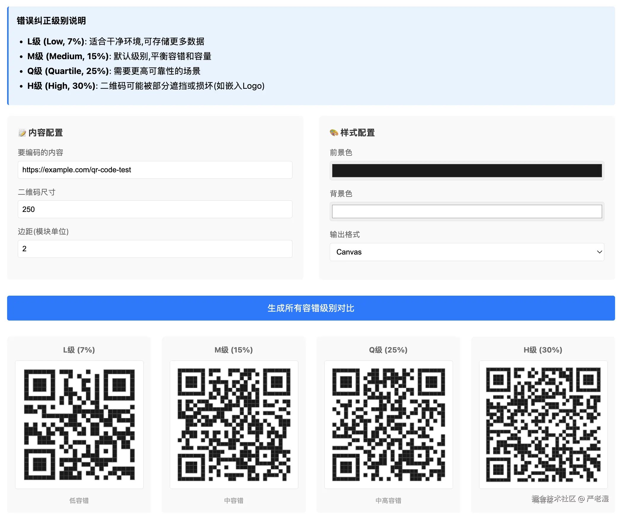 项目实现了完整的二维码生成功能,包括: