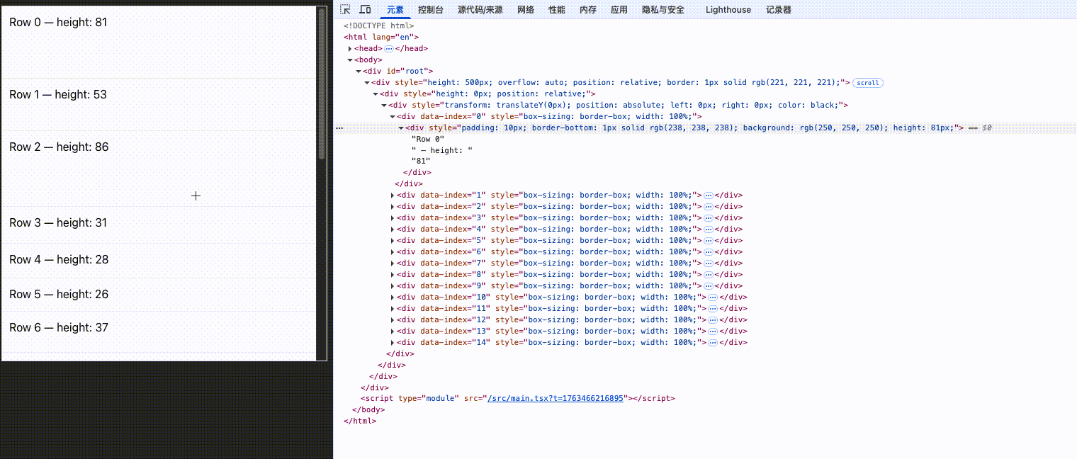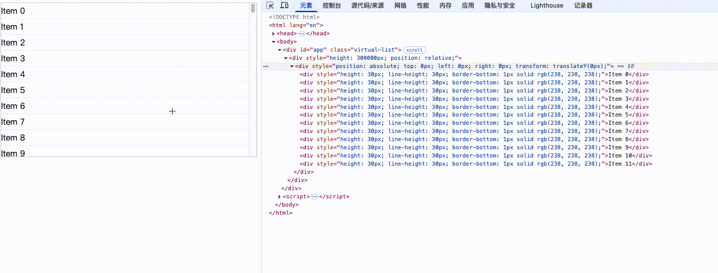 目标:让页面只渲染可见的少量节点,其余都是空白高度