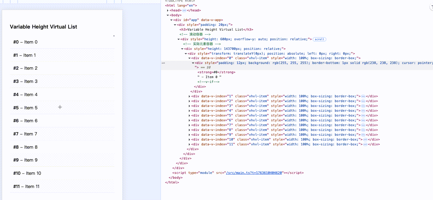 虚拟列表本质就是:用极少数DOM,模拟海量的内容渲染,并保持页面流畅