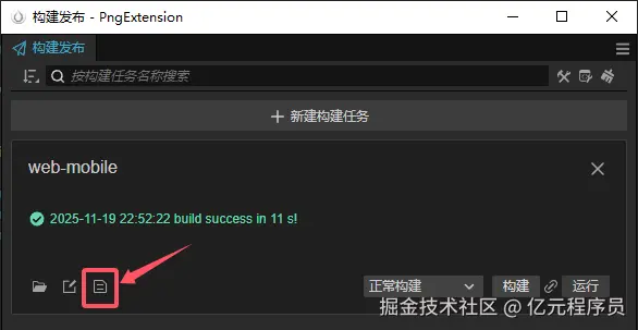 编译代码后,打开我们的构建面板,开始进行构建,构建完成后可以点开日志查看: