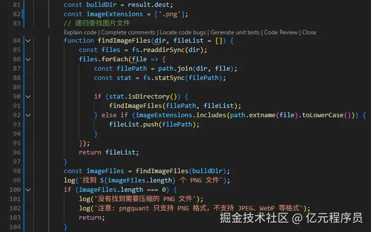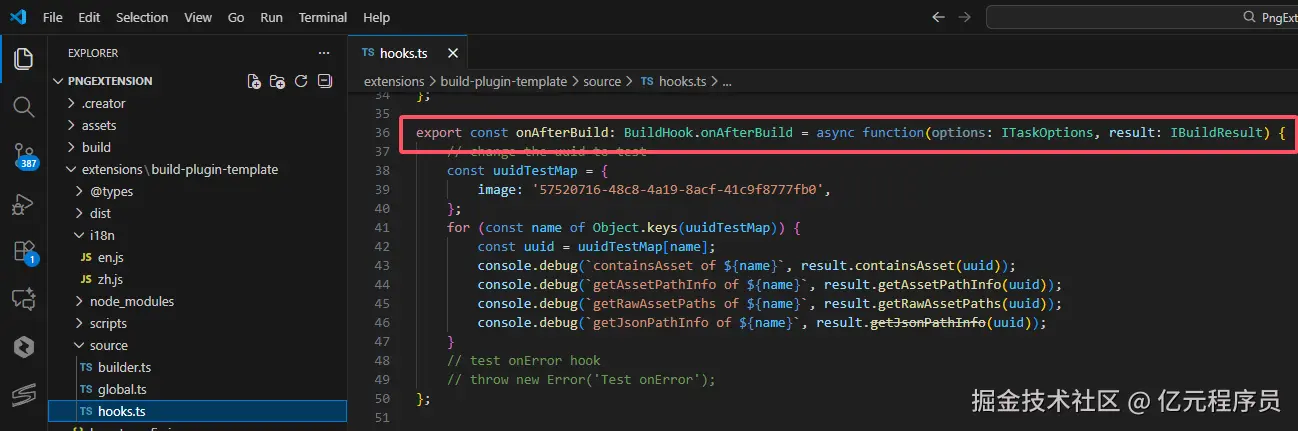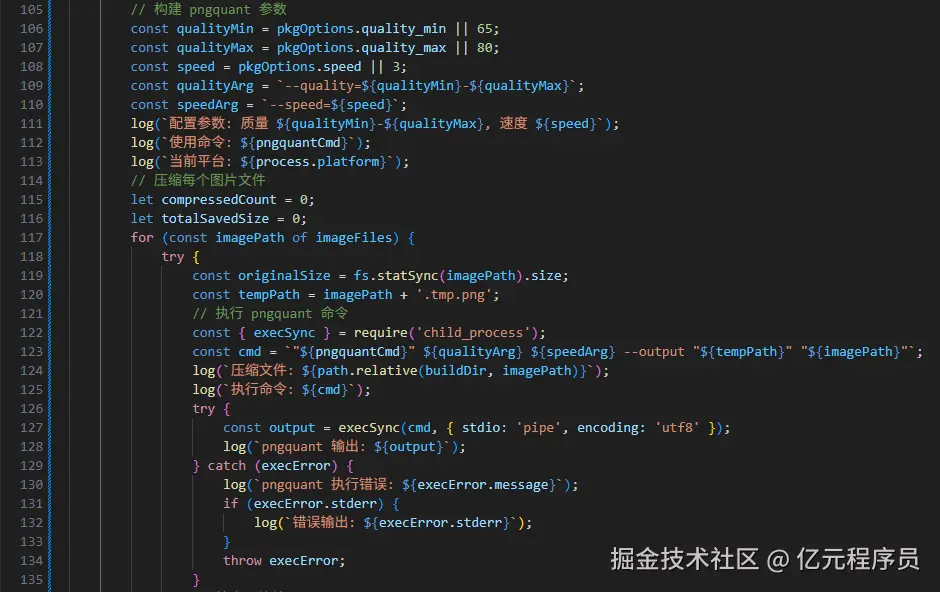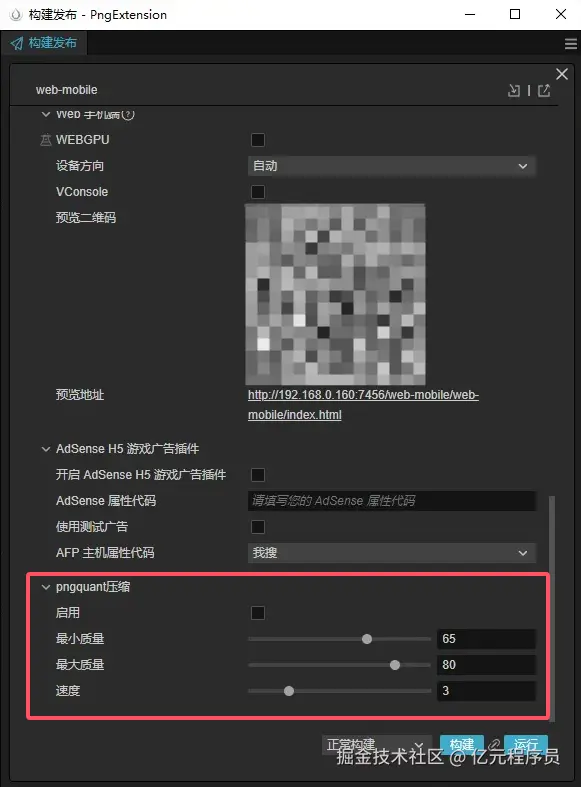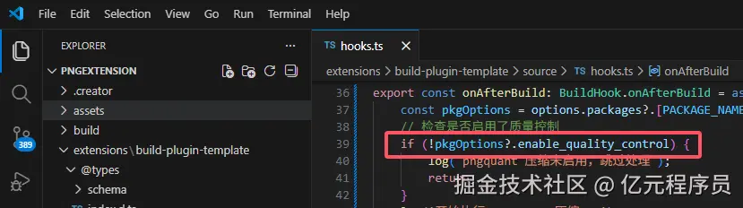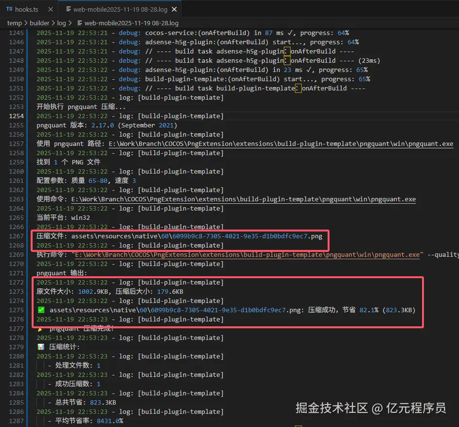 界面控制添加完之后,我们需要把pngquant压缩植入到构建完成的钩子(onAfterBuild)里,使其构建完成后自动按照配置的参数进行压缩。