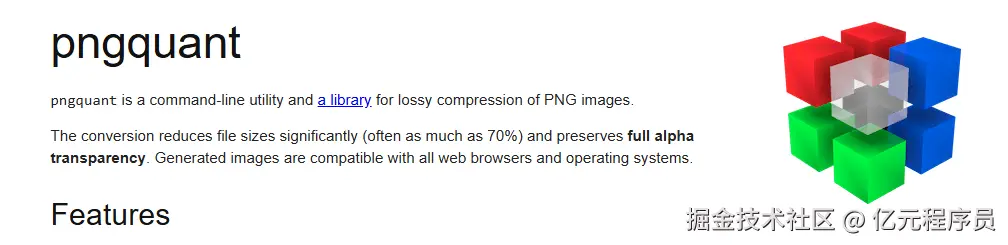 pngquant是一款用于PNG图像有损压缩的命令行工具和函数库。