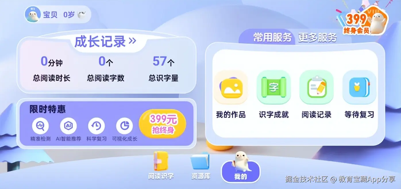 最重要的是,嗨宝AI识字软件还提供3本免费绘本的全流程体验,并提供 “不限次实时测字”及老师答疑服务,会员价格亲民(49元首月),性价比拉满。