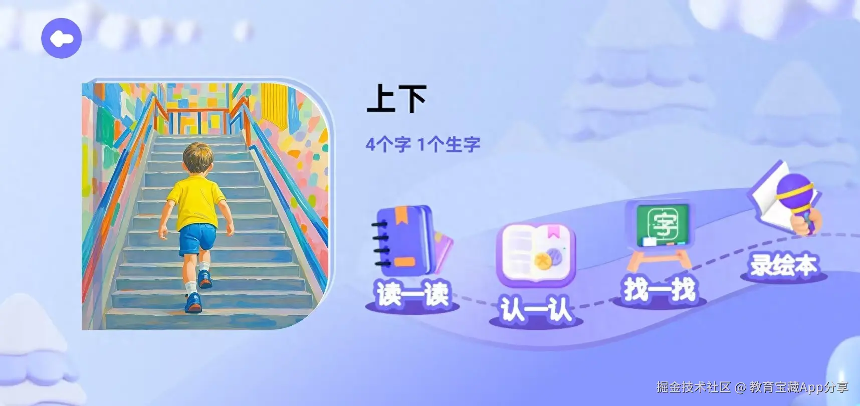 其中“认一认”关卡在1 个页面完成“听音-辨形-笔画-组词-造句-书写”六步闭环,把传统10分钟的识字量压缩到3分钟内完成,短时高效。