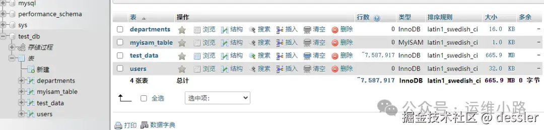 我们对数据库的最多的操作就是增删改查,所以我们登录上实际也是做这些操作,并且选择对应的库,会自动显示一些统计信息(如表列表,表容量,表数据数量等信息)。