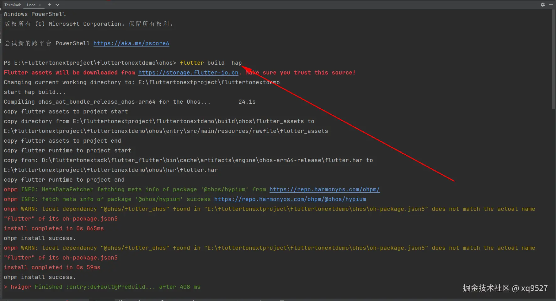 我们在终端执行 flutter build hap 编译一下我们的项目