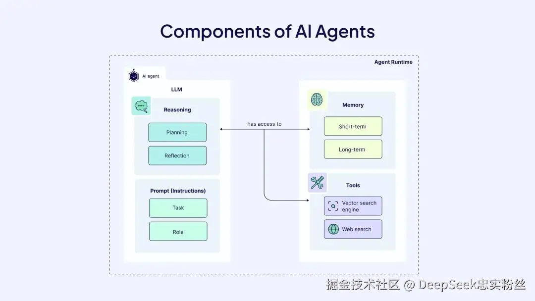智能体利用大模型能够有效地进行推理;利用工具来完成和现实世界交互的任务,比如获取实时咨询;又结合历史上下文来辅助多次的用户交互。