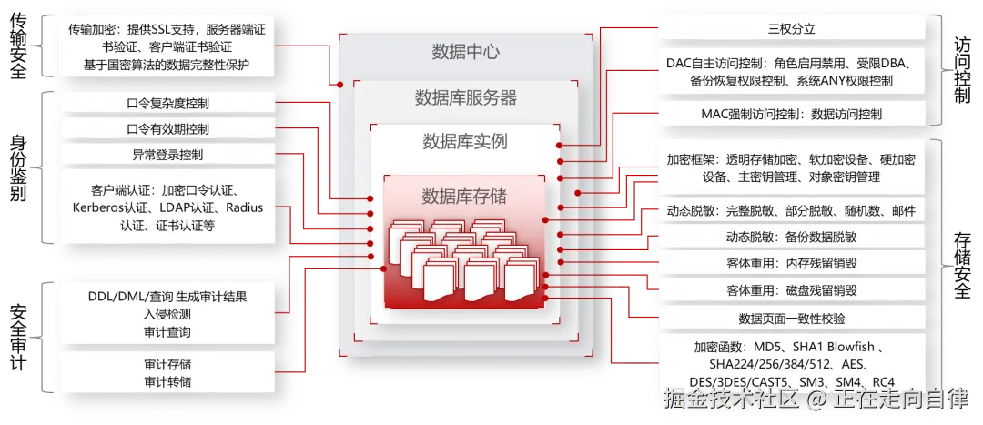 医疗数据涉及患者隐私,安全性要求极高。金仓数据库构建了完善的数据安全保护体系: