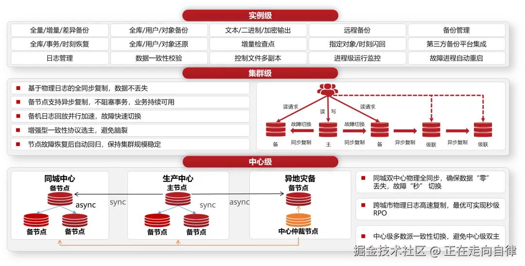 1.本地高可用:支持主备切换、读写分离等部署模式