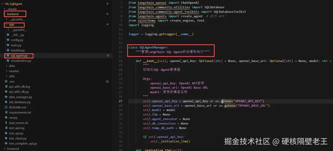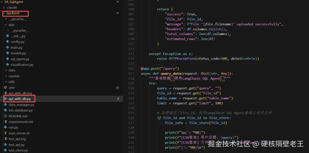 有了核心的SQLAgentManager,我们需要用FastAPI封装成Web API,供前端调用。核心代码如下: