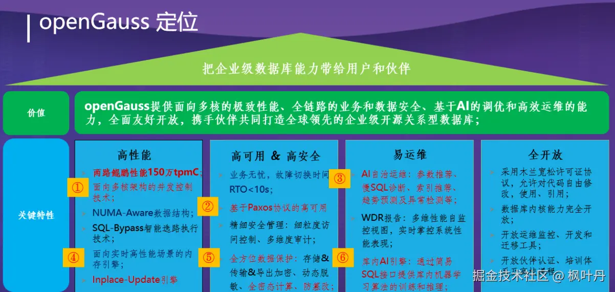 openGauss的技术特性紧密围绕其产品定位,在多个关键领域实现了突破性创新。