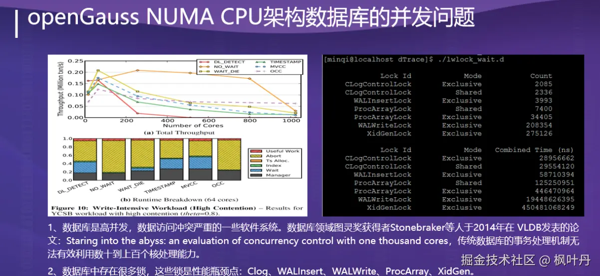 - NUMA-Aware高性能架构:openGauss深度优化了非一致性内存访问架构,通过绑定CPU核、减少跨核内存访问、优化中断调度等策略,充分释放多核处理器的潜力,显著提升事务处理效率。