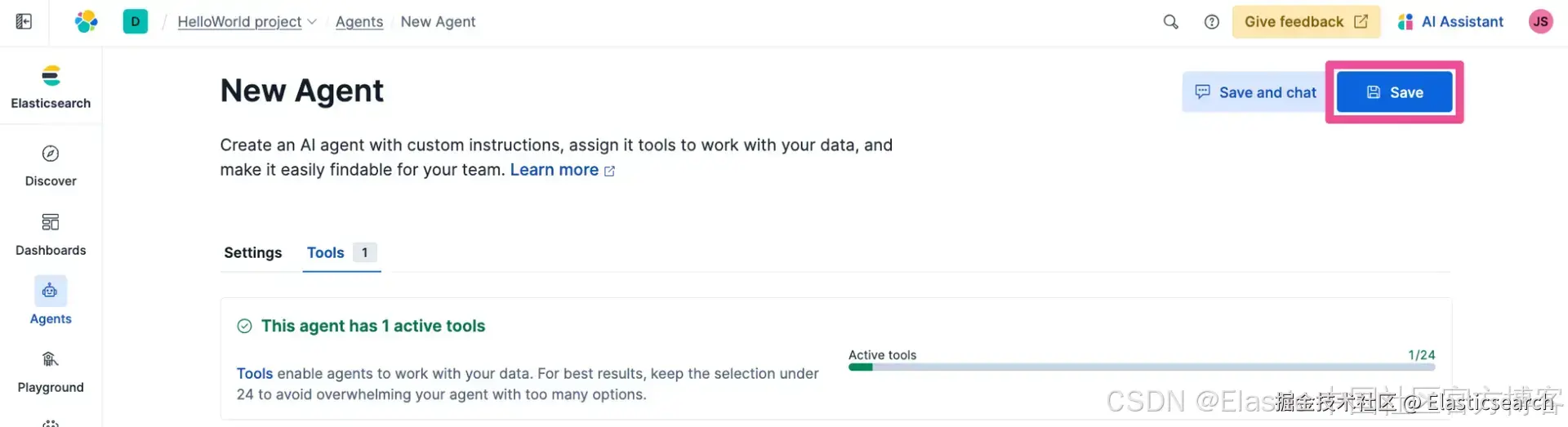 点击 Save 创建该 agent。