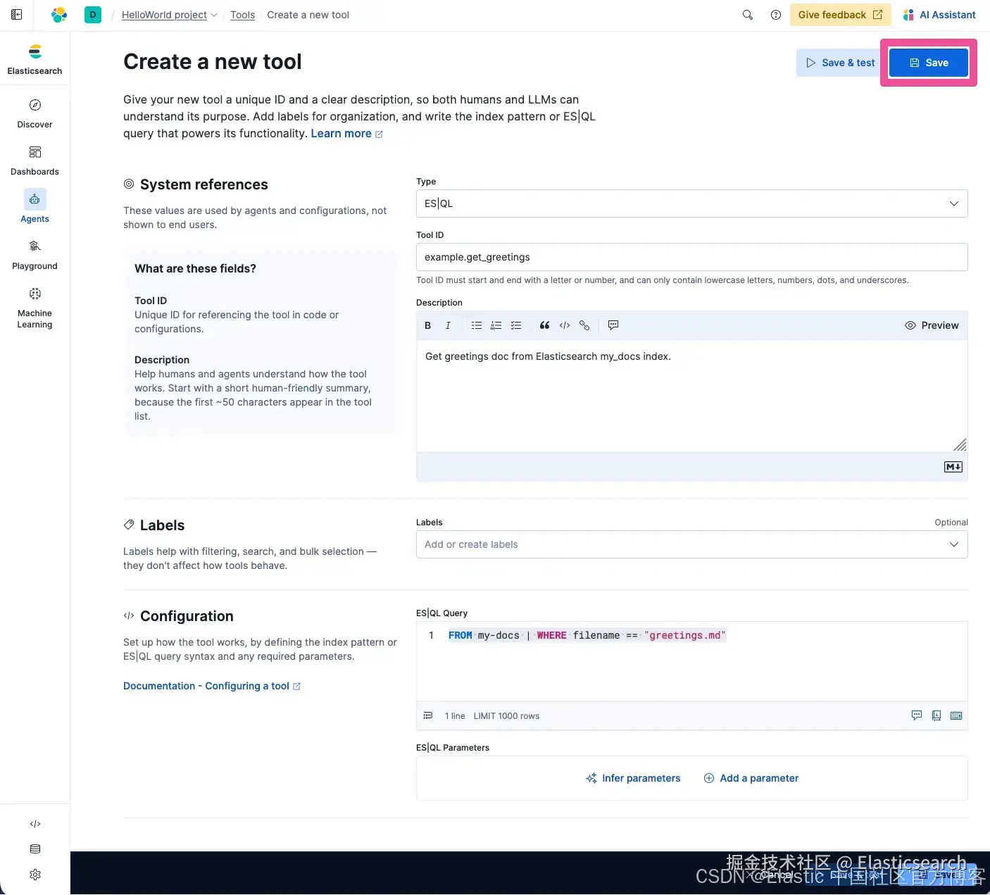 此演练的下一步是创建一个能够使用存储在 Elastic 中数据的 agent。