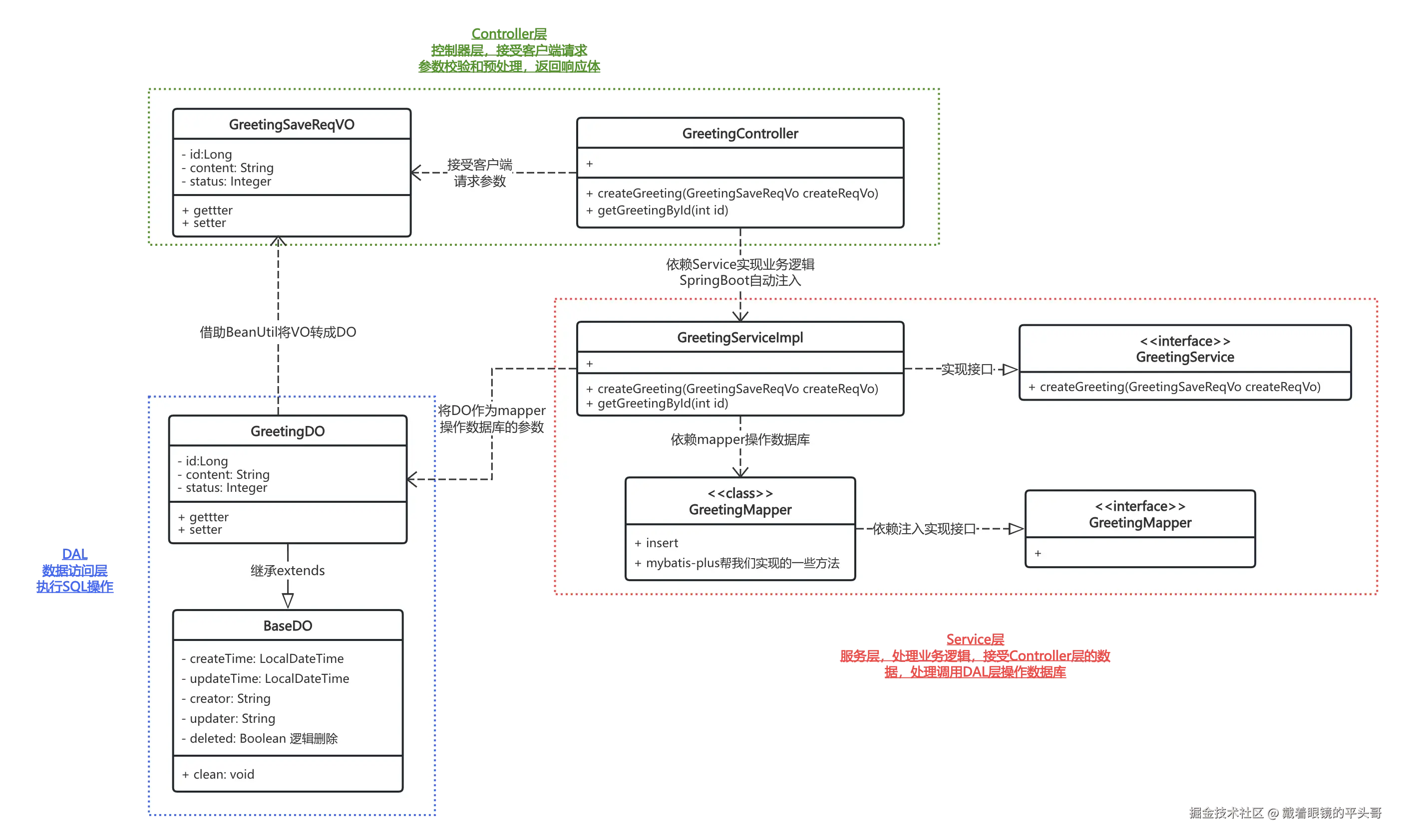 GreetingDO: 问候语数据对象,是和数据库表中的字段一一对象的Java原生对象,有些规范中叫PO,也是一个Java类。
