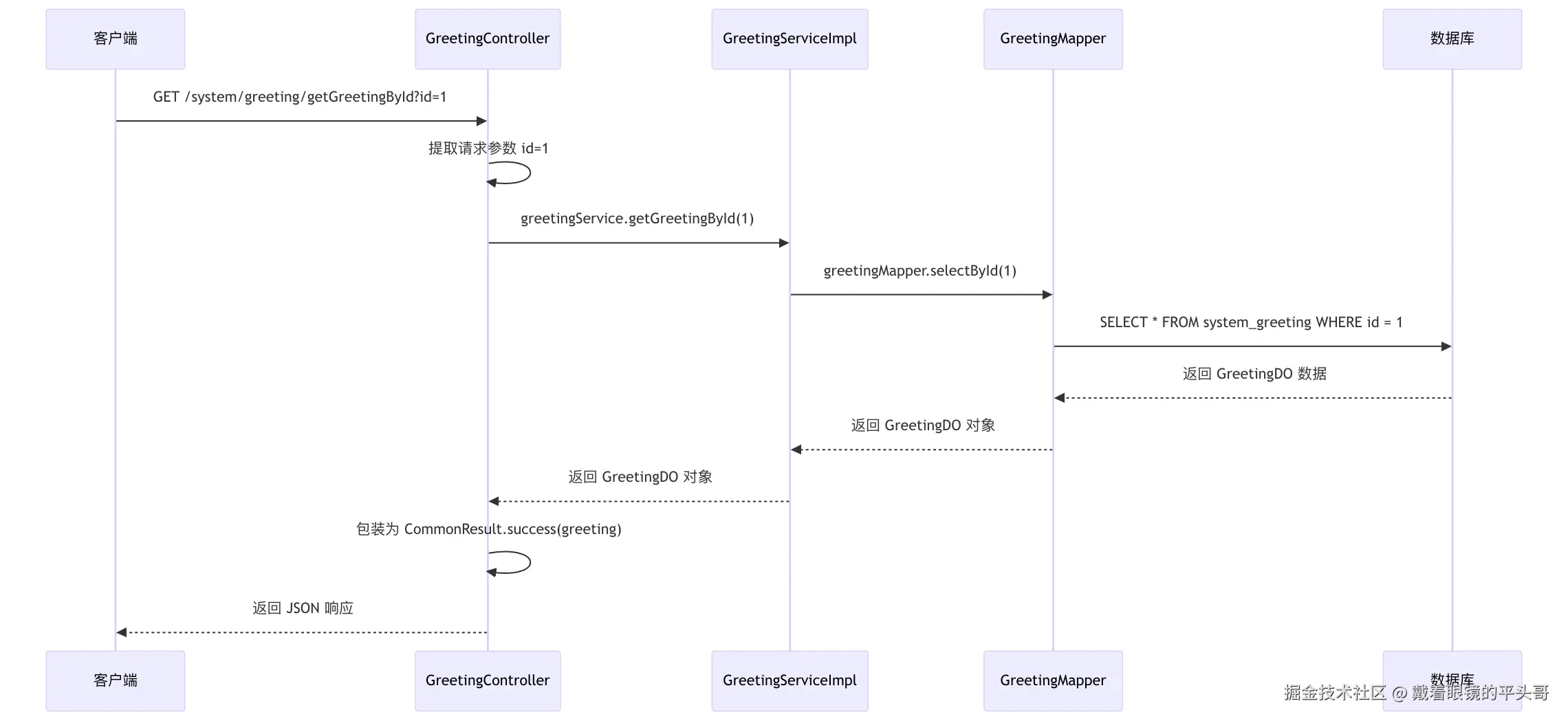 上面这个图应该清晰地展现了getGreetingById接口牵扯到的各个模块(类)之间的调用流程。
