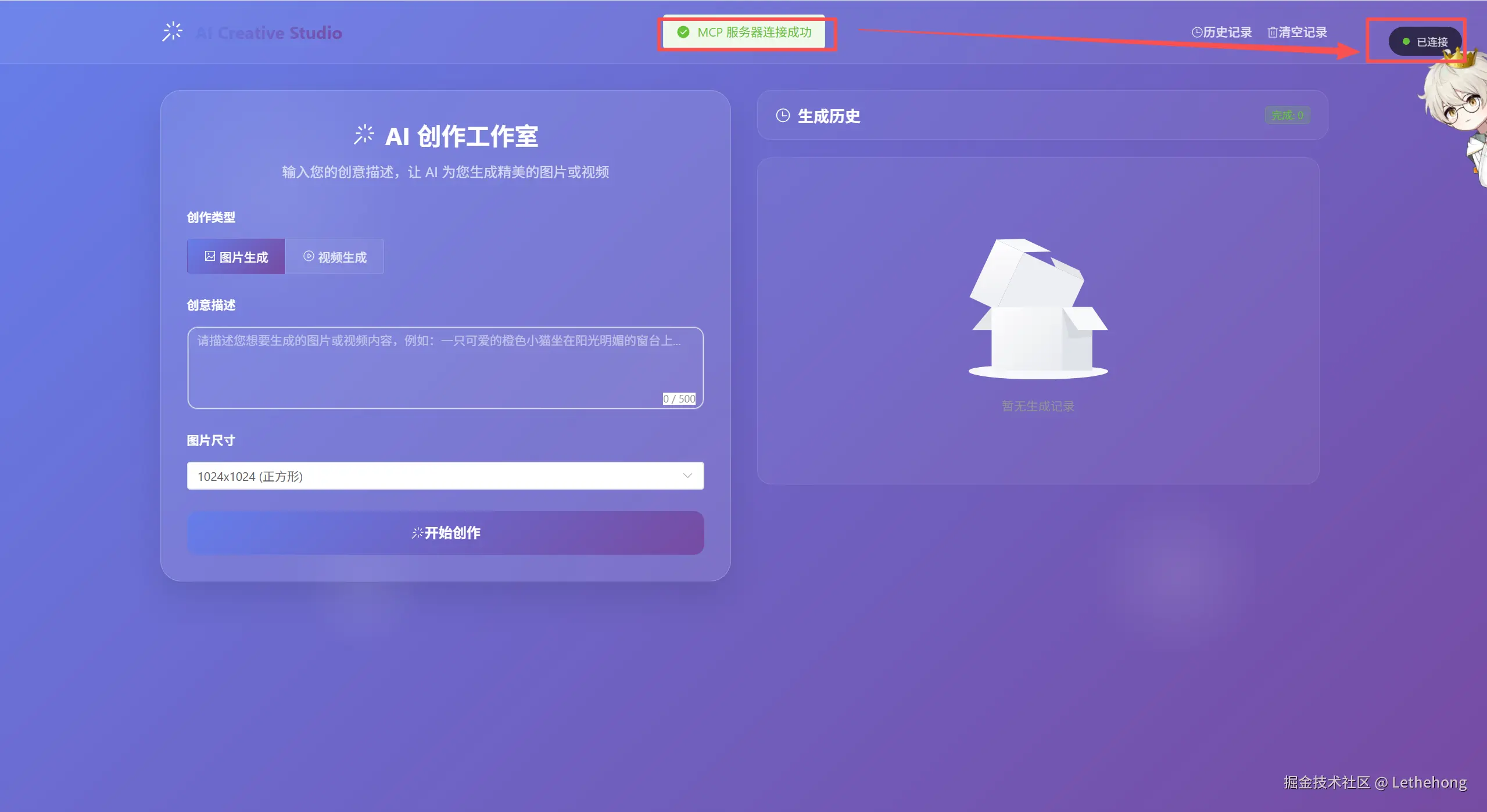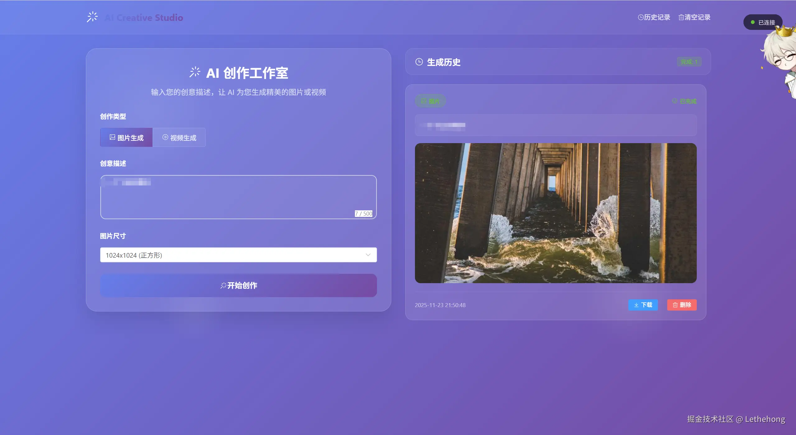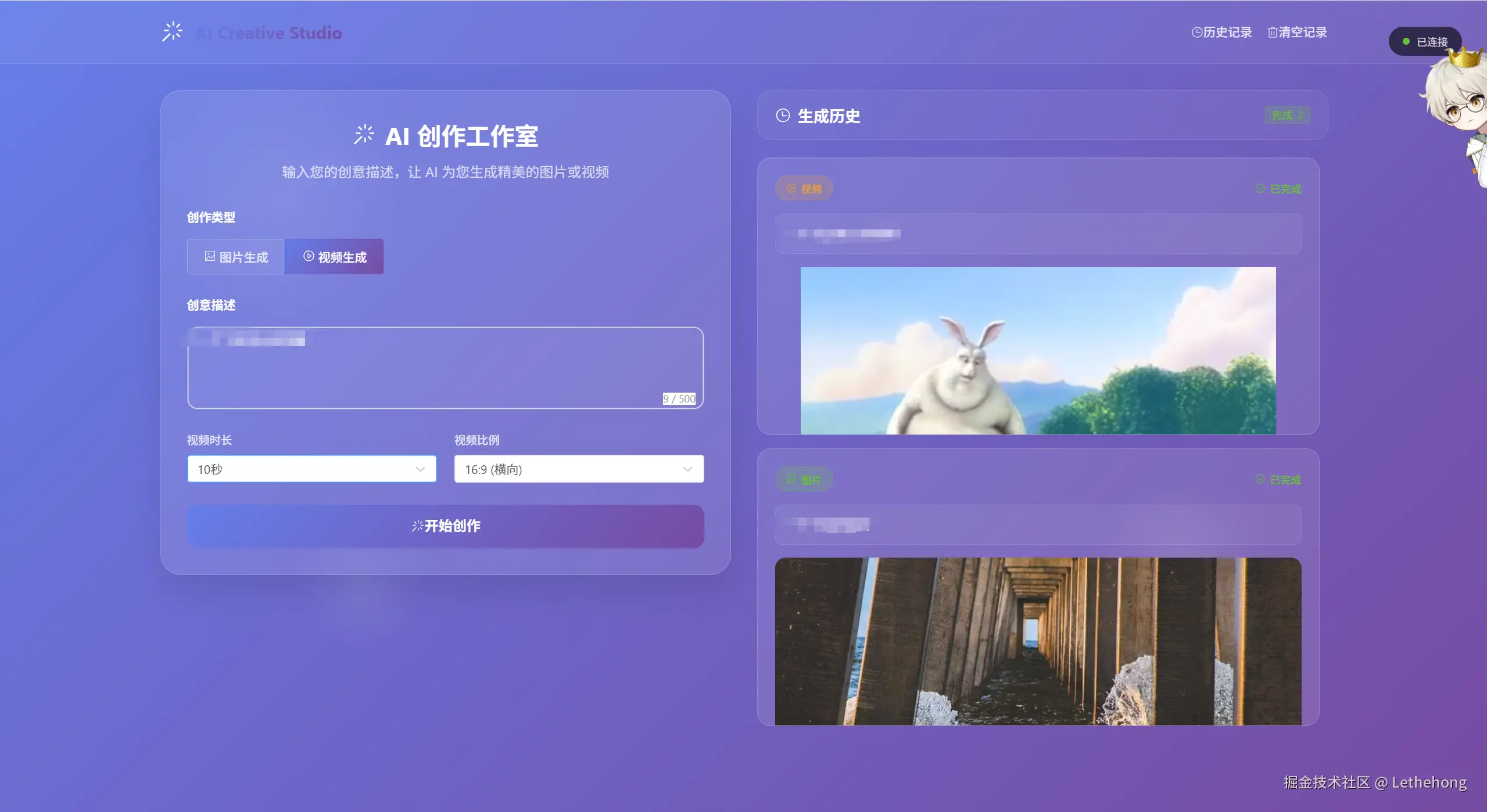 本报告首先调研了蓝耘平台及其集成的豆包文生图、文生视频工具,详细介绍了它们的技术原理和功能特点。然后,结合Vue3+TypeScript技术栈,从零开始开发了一个集成MCP服务器的AI工具网站,实现了文本生成图片和视频的功能。在开发过程中,我们重点解决了SSE实时通信、错误处理、进度显示和历史记录等关键问题。通过本报告的实践,开发者可以快速掌握将大模型能力集成到Web应用中的方法,为构建更复杂的AI应用奠定基础。