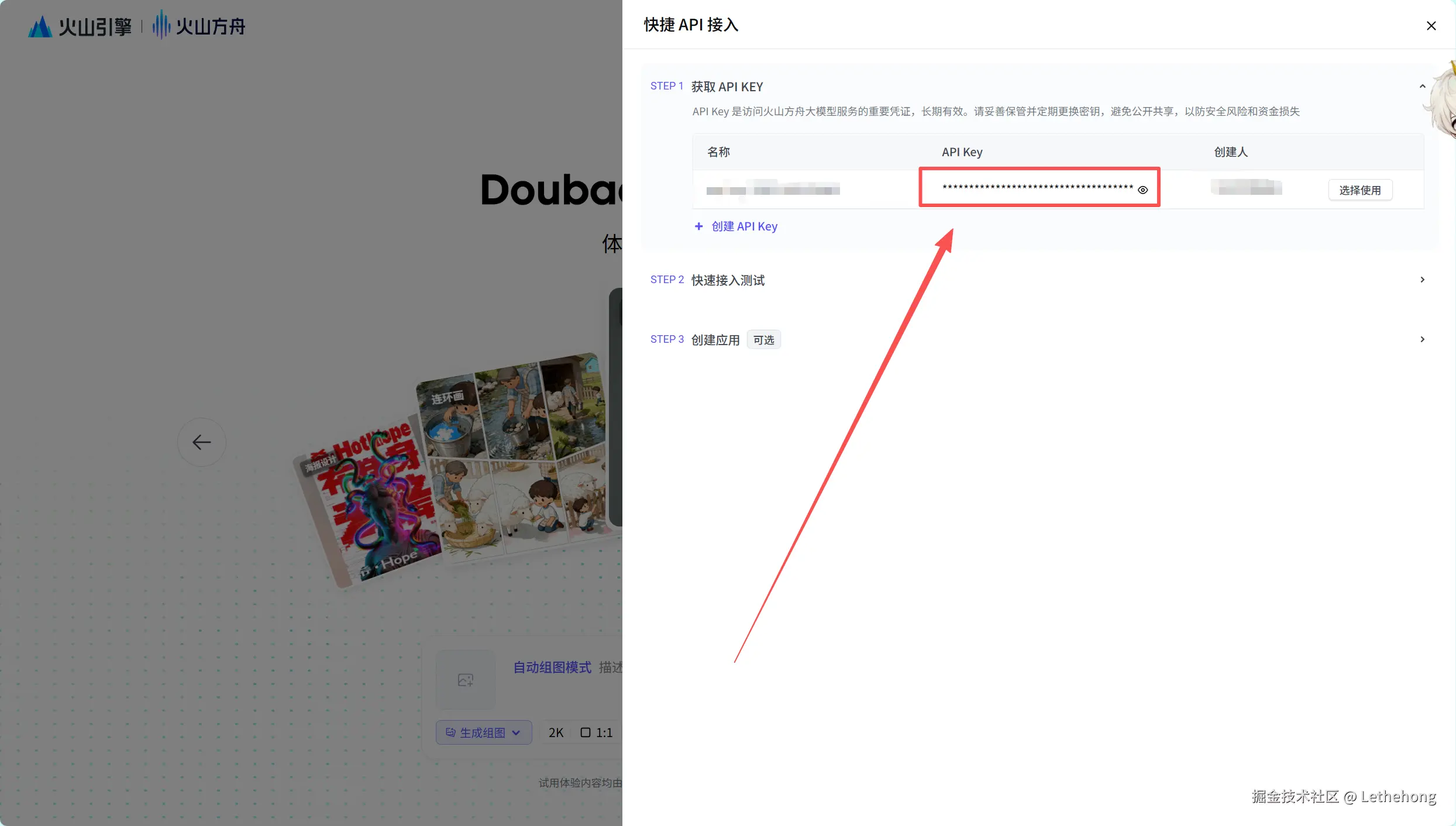 登录火山引擎官网(www.volcengine.com)。进入“方舟大模型体验中心”,创建一个新的应用。