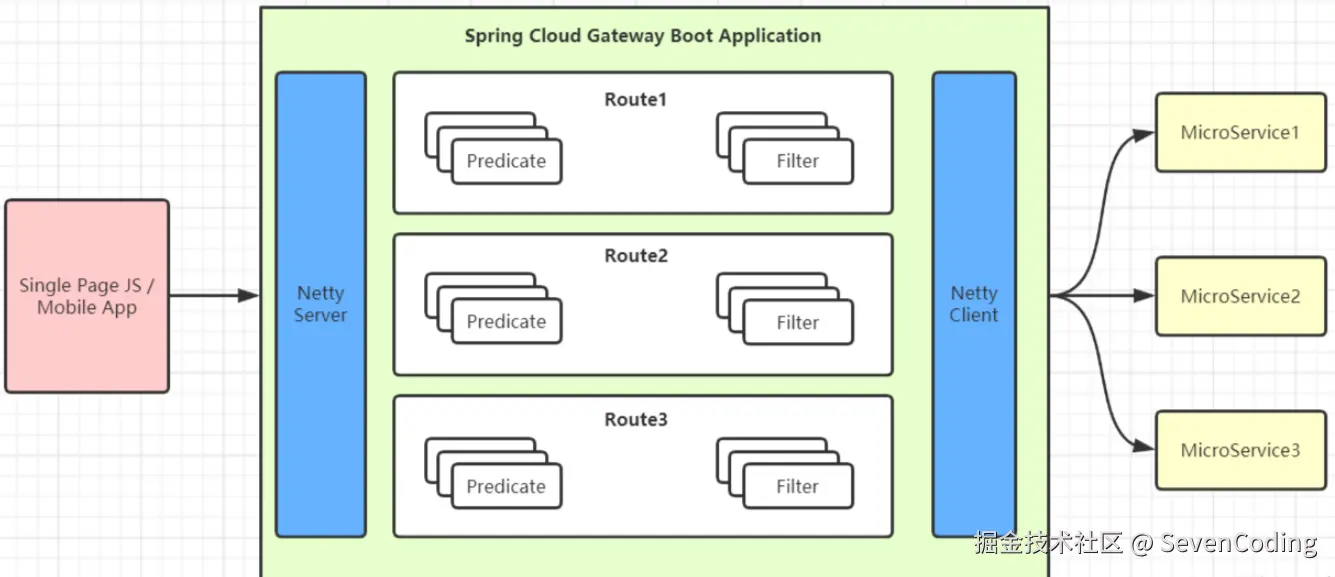 在Spring Cloud Gateway里,有三个关键组件: