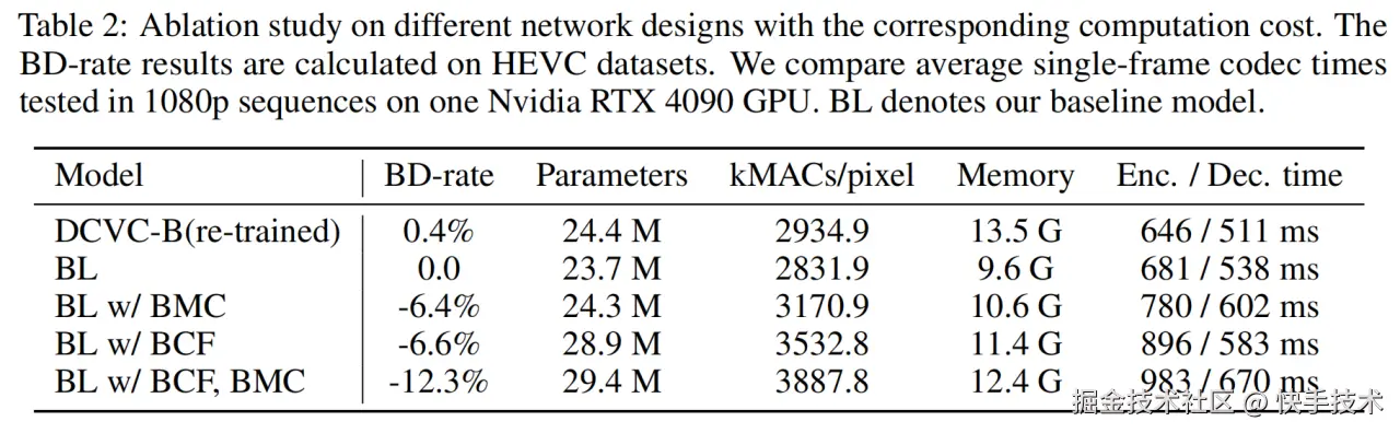 研究团队对 BRHVC 的两个模块进行了消融实验,结果表明 BMC 和 BCF 两个模块有着较高的解码收益性价比,能够获得相对基准模型约 12.3%的显著码率节省。