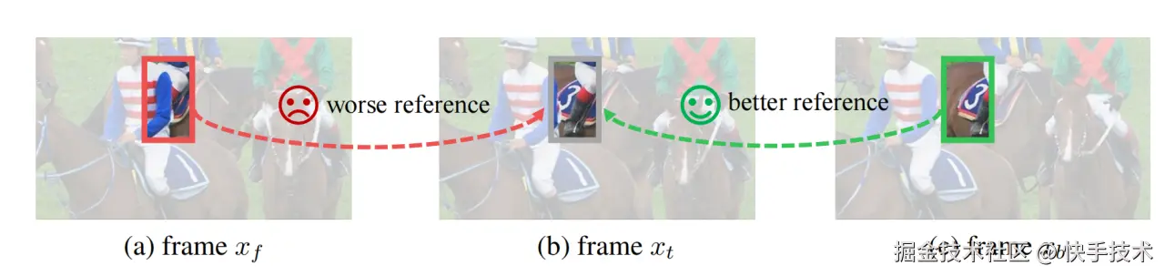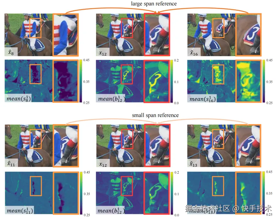 长跨度下两个参考帧的信息价值存在显著差异,如何有效利用参考帧的这一特性是一个关键问题。目前的方法没有显式建模出两个参考帧的重要性权重,即预先认为两帧具有同等的参考价值,这与很多现实情况相悖。以上图为例,在编码当前帧(如上图(b))的“号码牌”时,左边的帧由于遮挡而无法提供有效的参考信息,只有右边的帧有足够的参考价值。为了进一步定量分析这种不平衡的参考贡献问题,研究团队设计了专门实验: